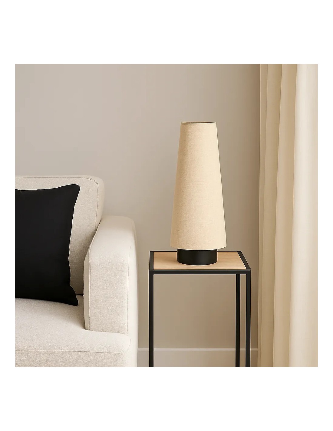 Lampara mesa lino base metal negro 19X19X52,5 CM