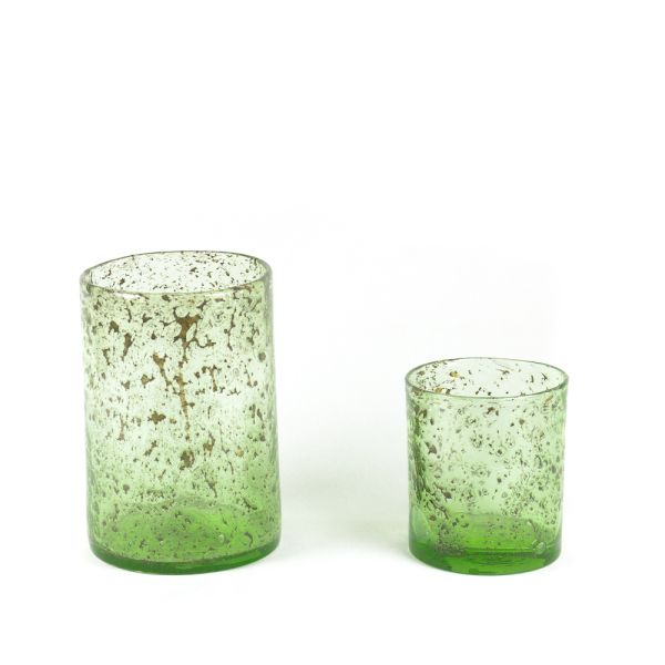 JARRON FLORERO VASO PEQUEÑO REDONDO CRISTAL VERDE OLIVA 12X13