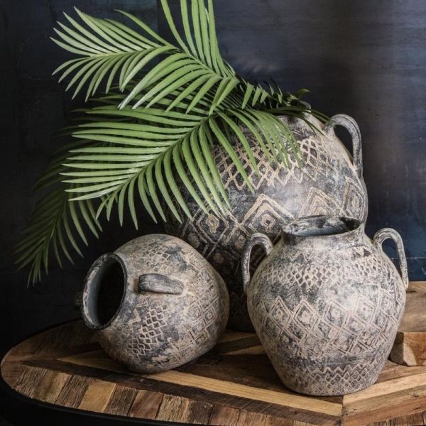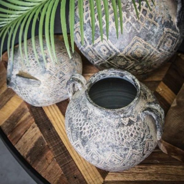 JARRON CERAMICA GRIS CON ASAS 26X26X24 CM