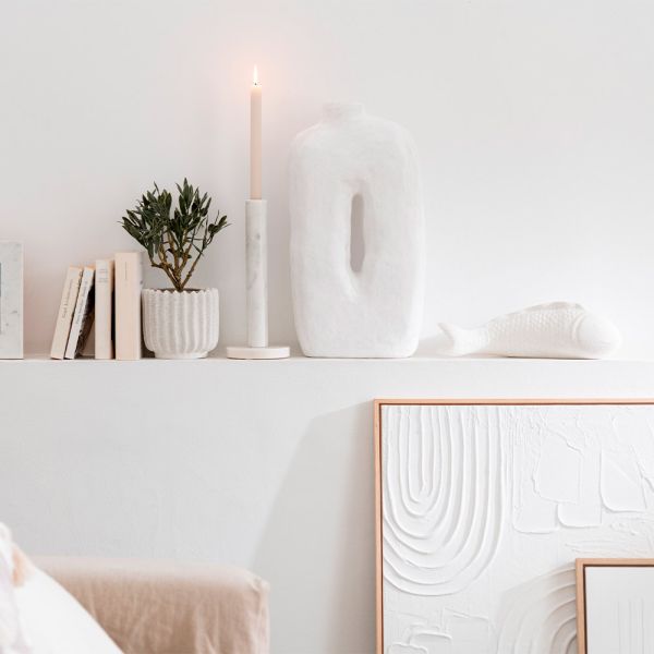 JARRON CUADRADA PAPEL MACHE BLANCO 25X10X50