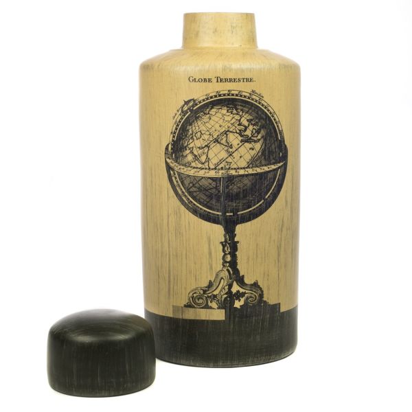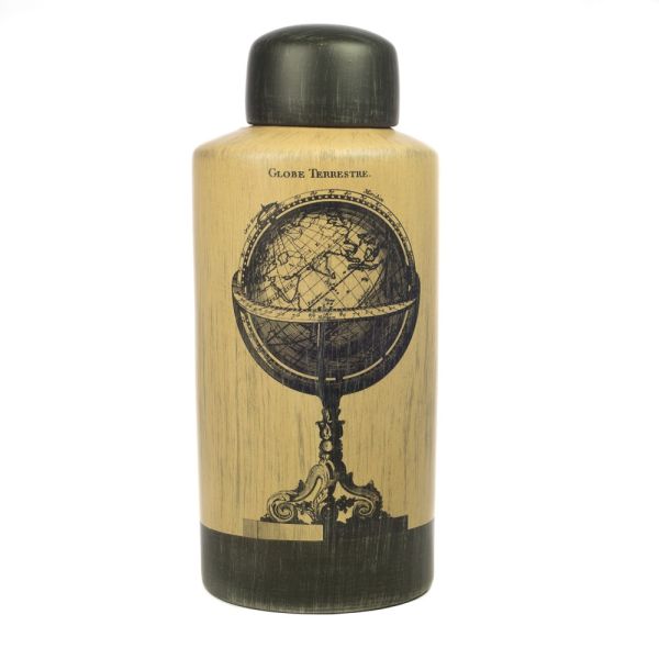 BOTE DECORATIVO TIBOR CERAMICA BEIG NEG GLOBO TERRAQUEO 15X38