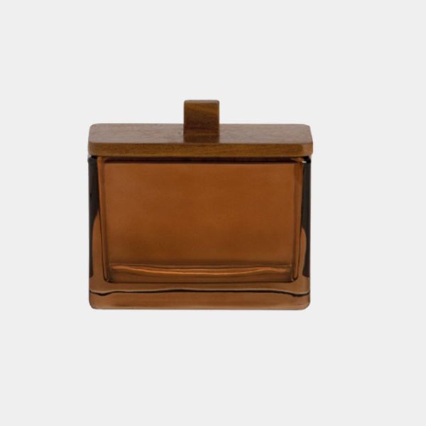 CAJA CRISTAL MARRON CON TAPA MADERA 11,5X6X10,5CM