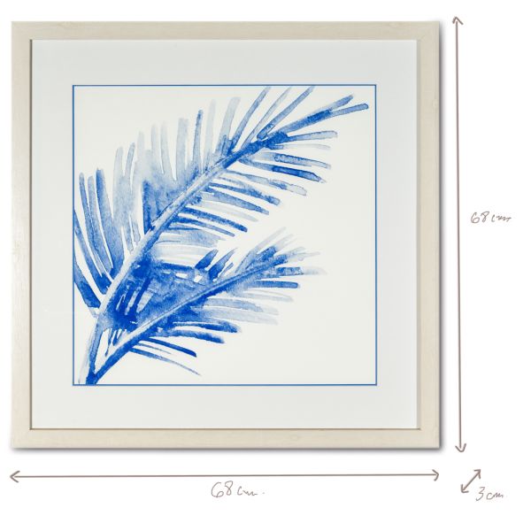 CUADRO DECORATIVO MADERA HOJAS AZULES 68X68