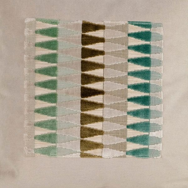 Cojín decorativo gris 50x50 relleno premium incluido centro geométrico verde fleco