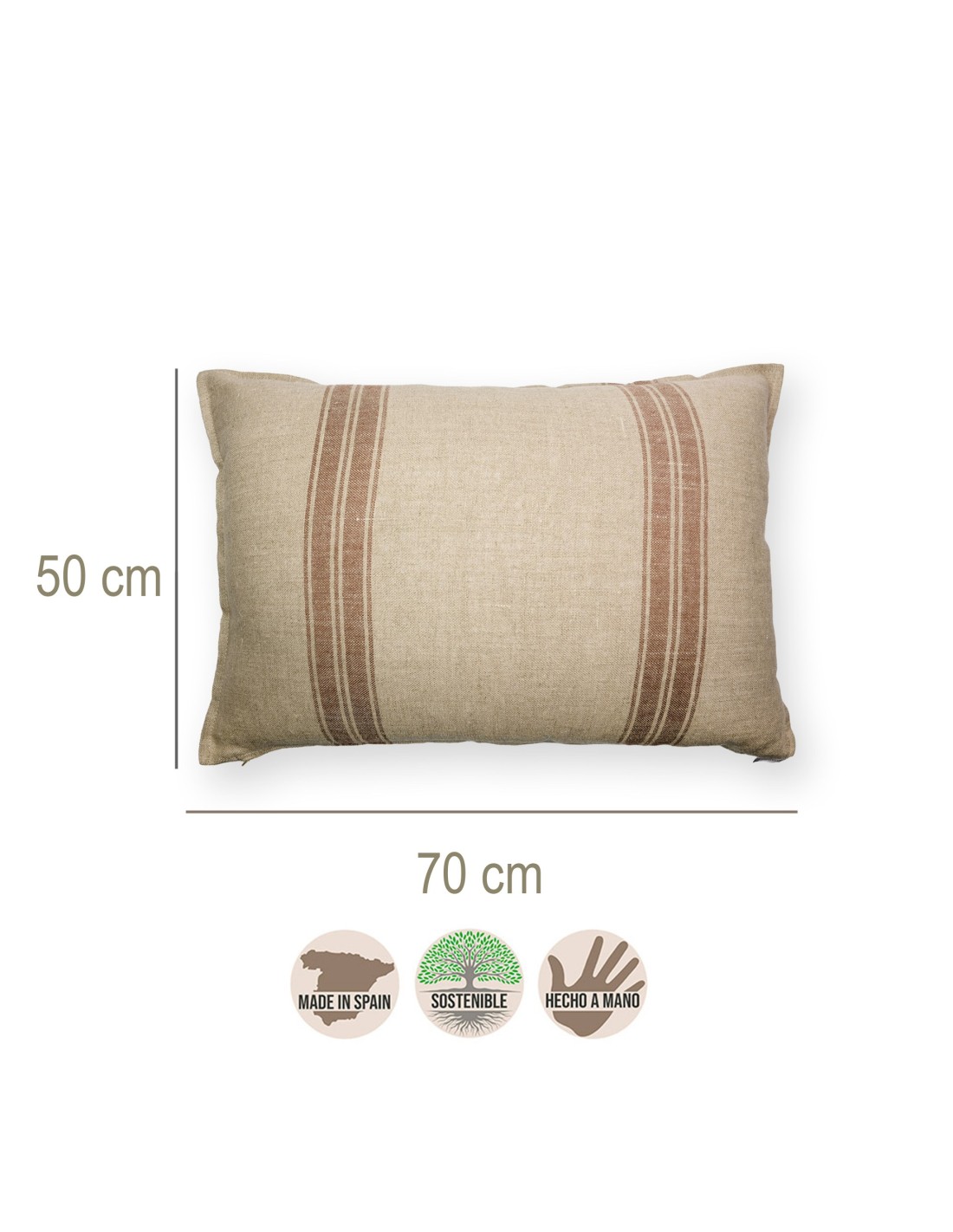 Cojín para cama y sofá gris rayas granate 70x50 Relleno premium incluido