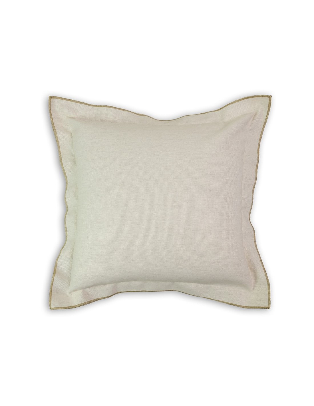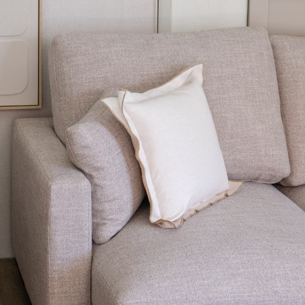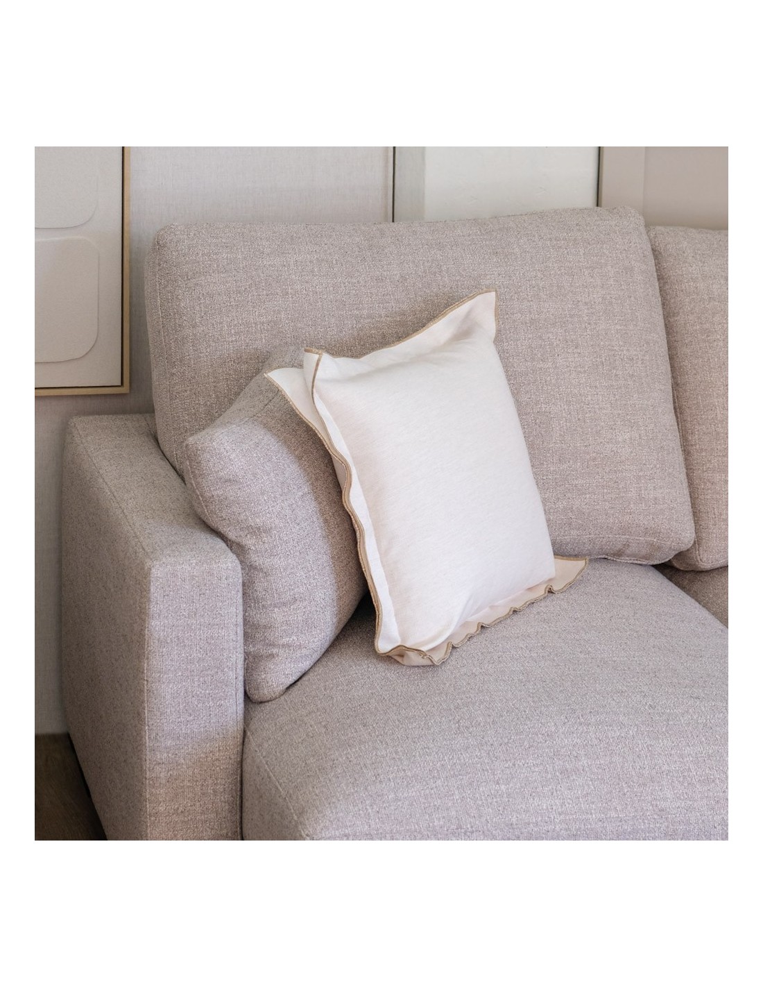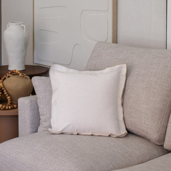 Cojín blanco roto liso pestaña doble 4cm bordada marrón oscuro 50X50 Relleno premium incluido