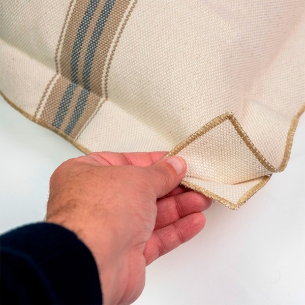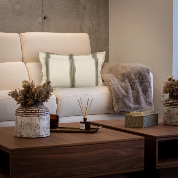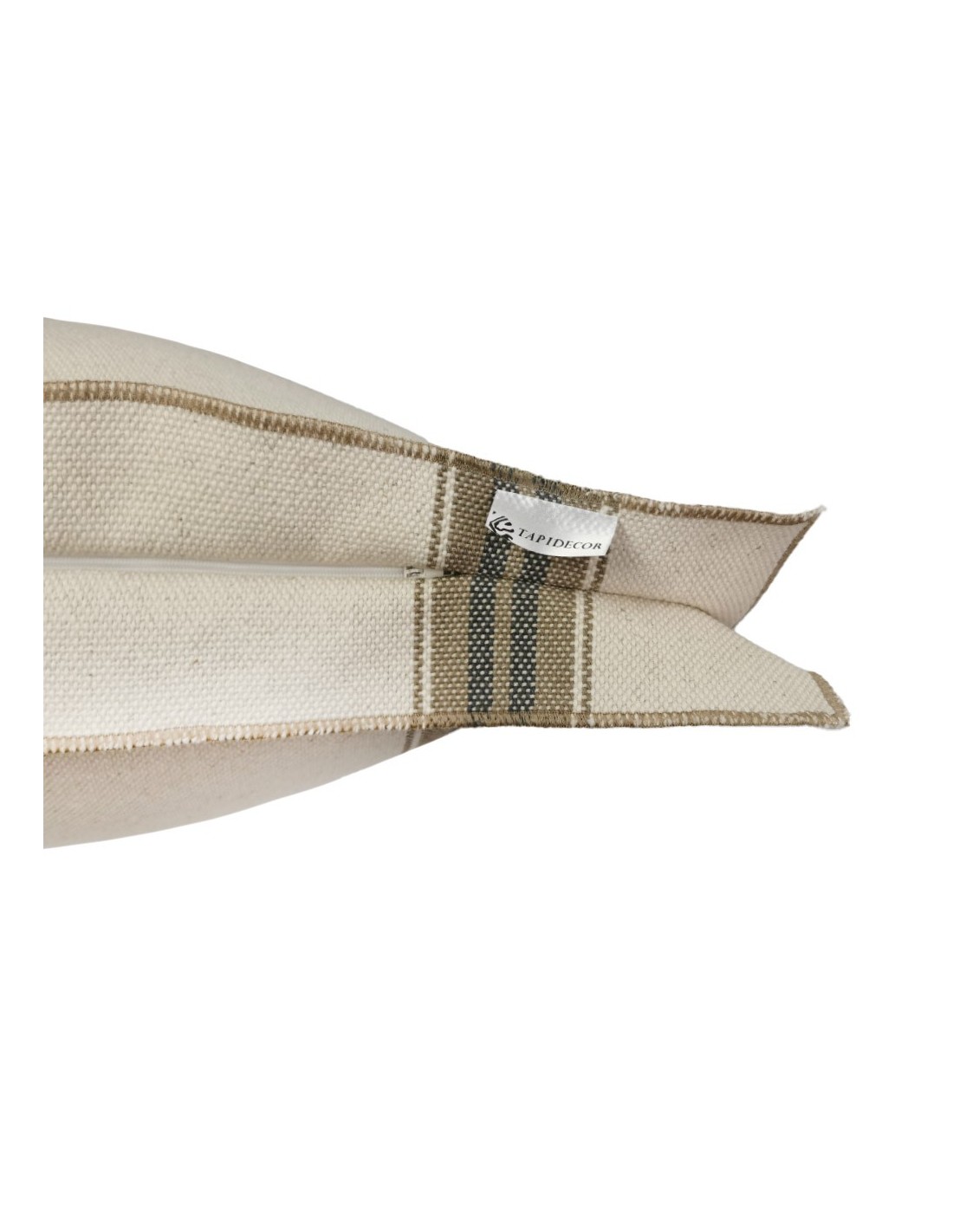Cojín beige raya azul pestaña bordada marrón 60X40 Relleno premium incluido