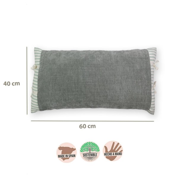 Cojín blanco rayas verdes funda verde oscuro 60X40 Relleno premium incluido