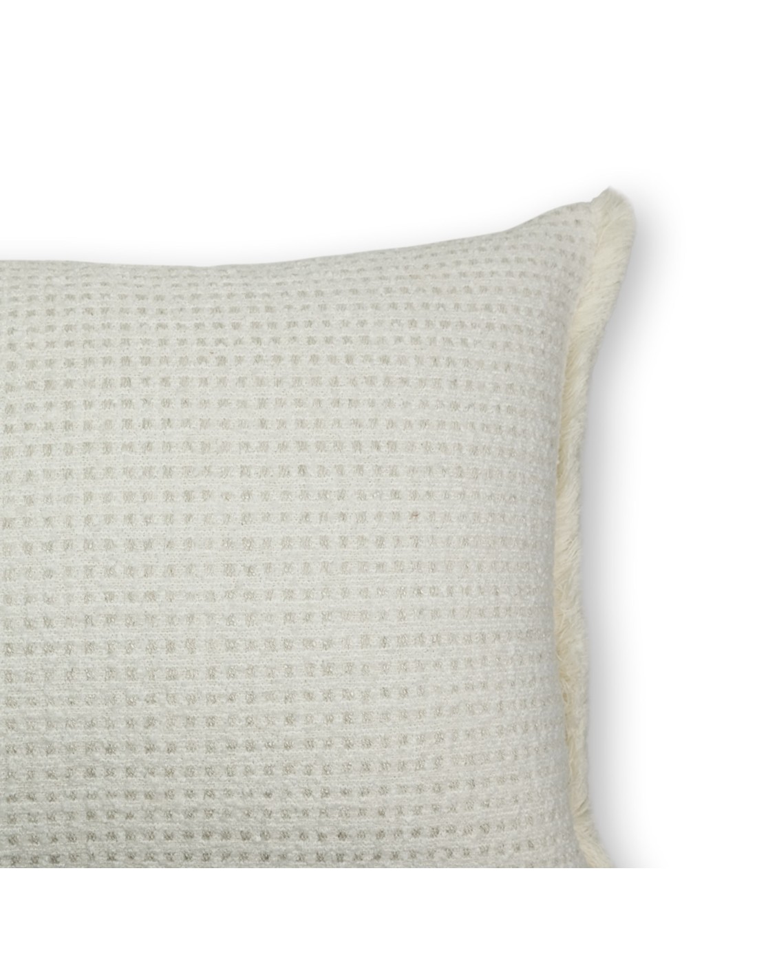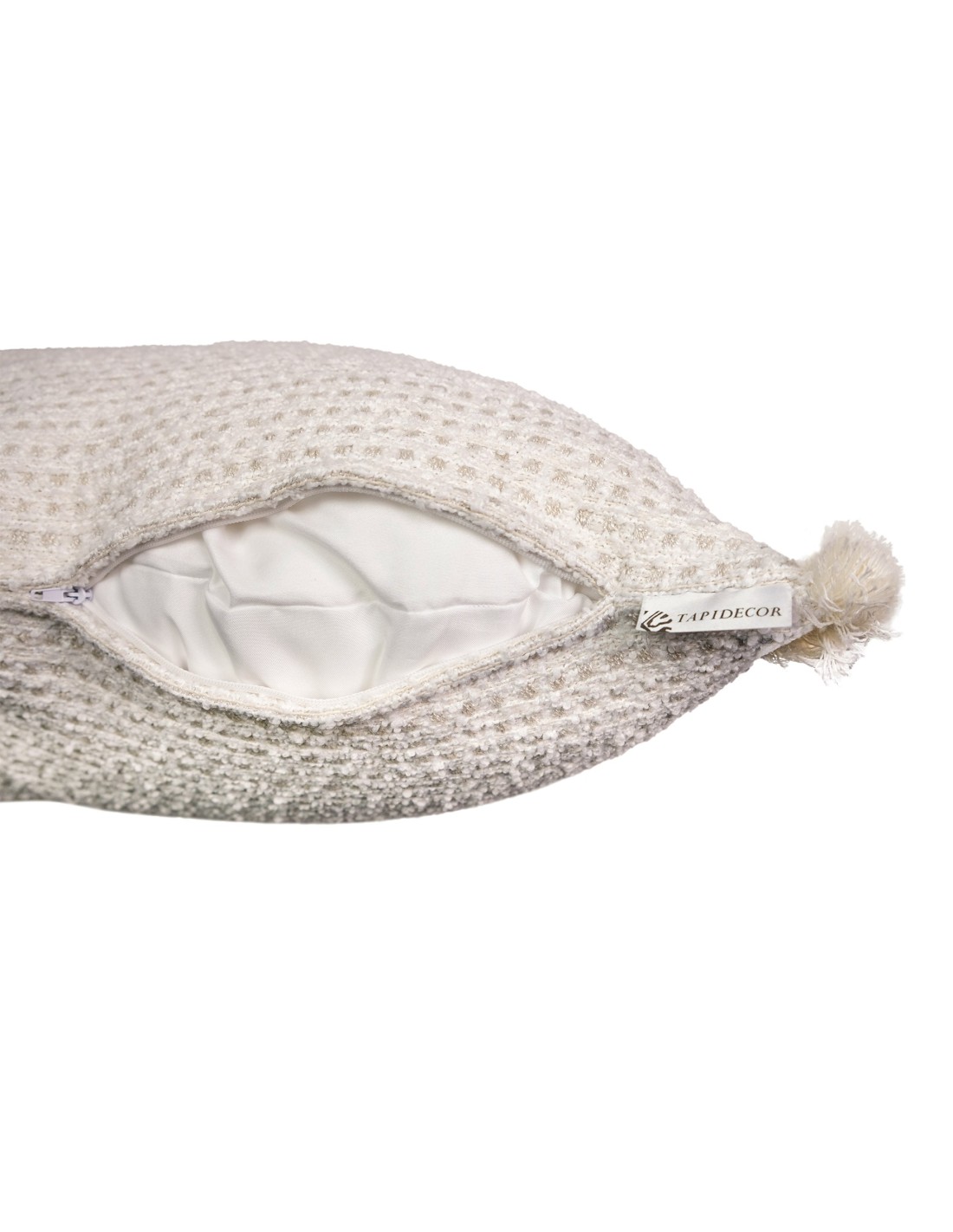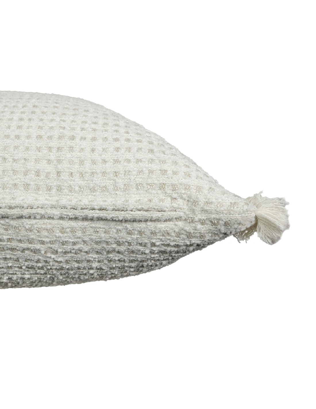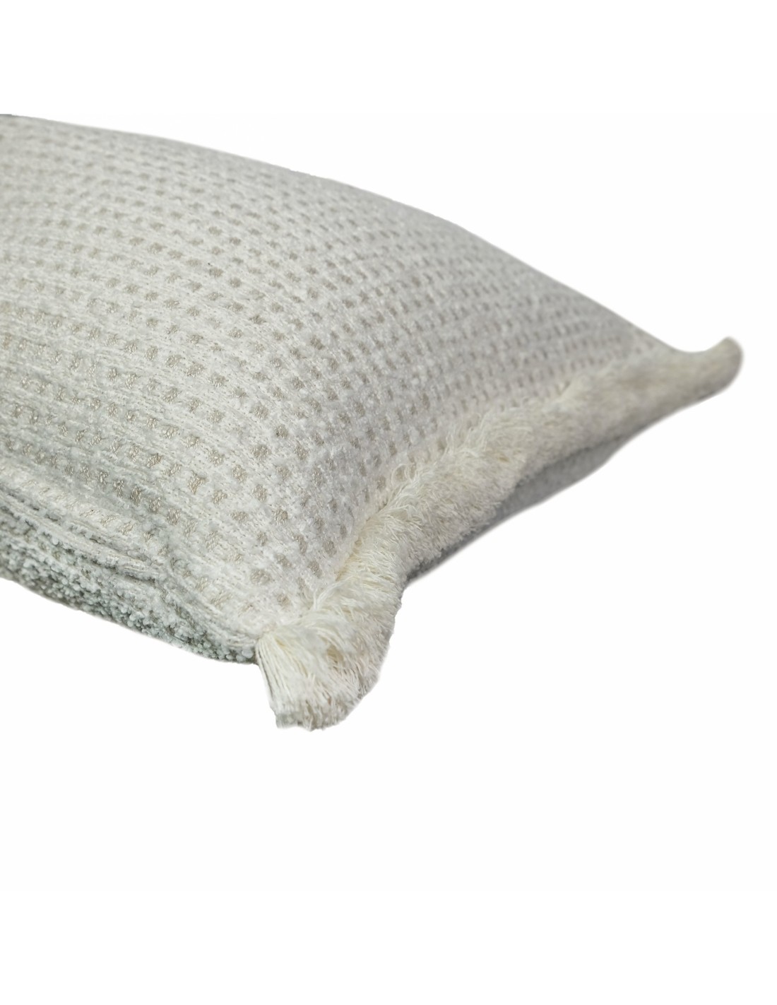 Cojín blanco geométrico cuadrados beige fleco algodón blanco 70X50, Relleno premium incluido