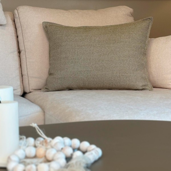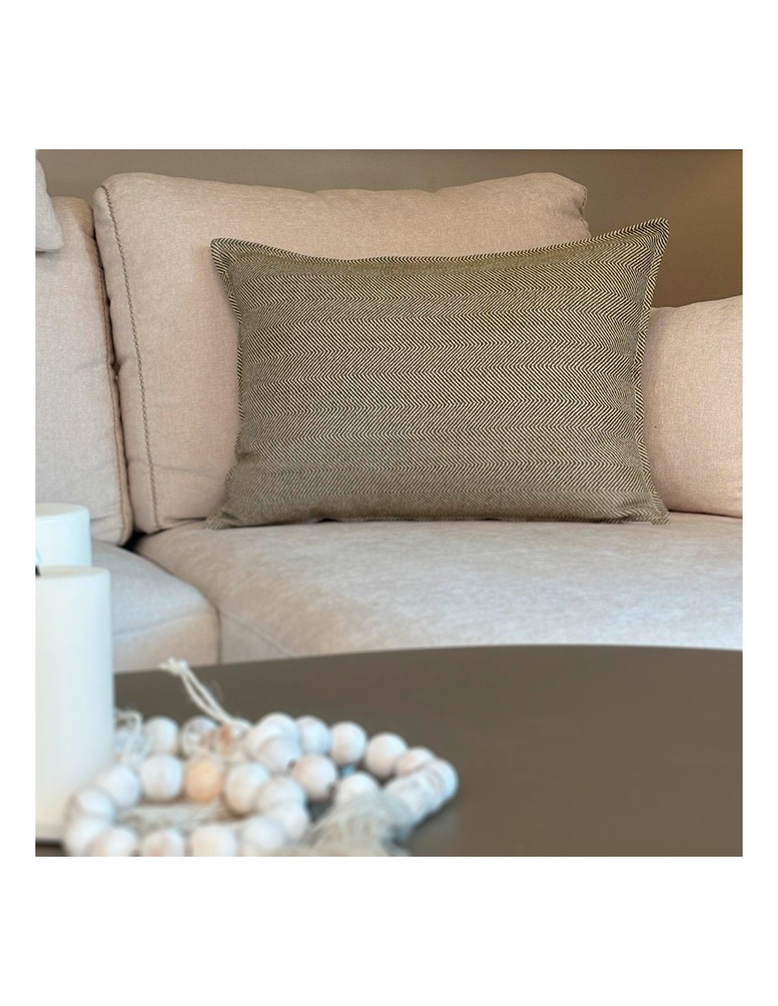 Cojín Espiga verde Oliva Pestaña minima 70x50 Relleno premium incluido