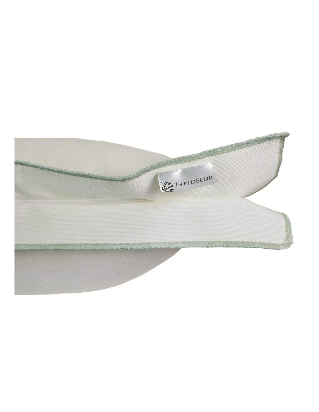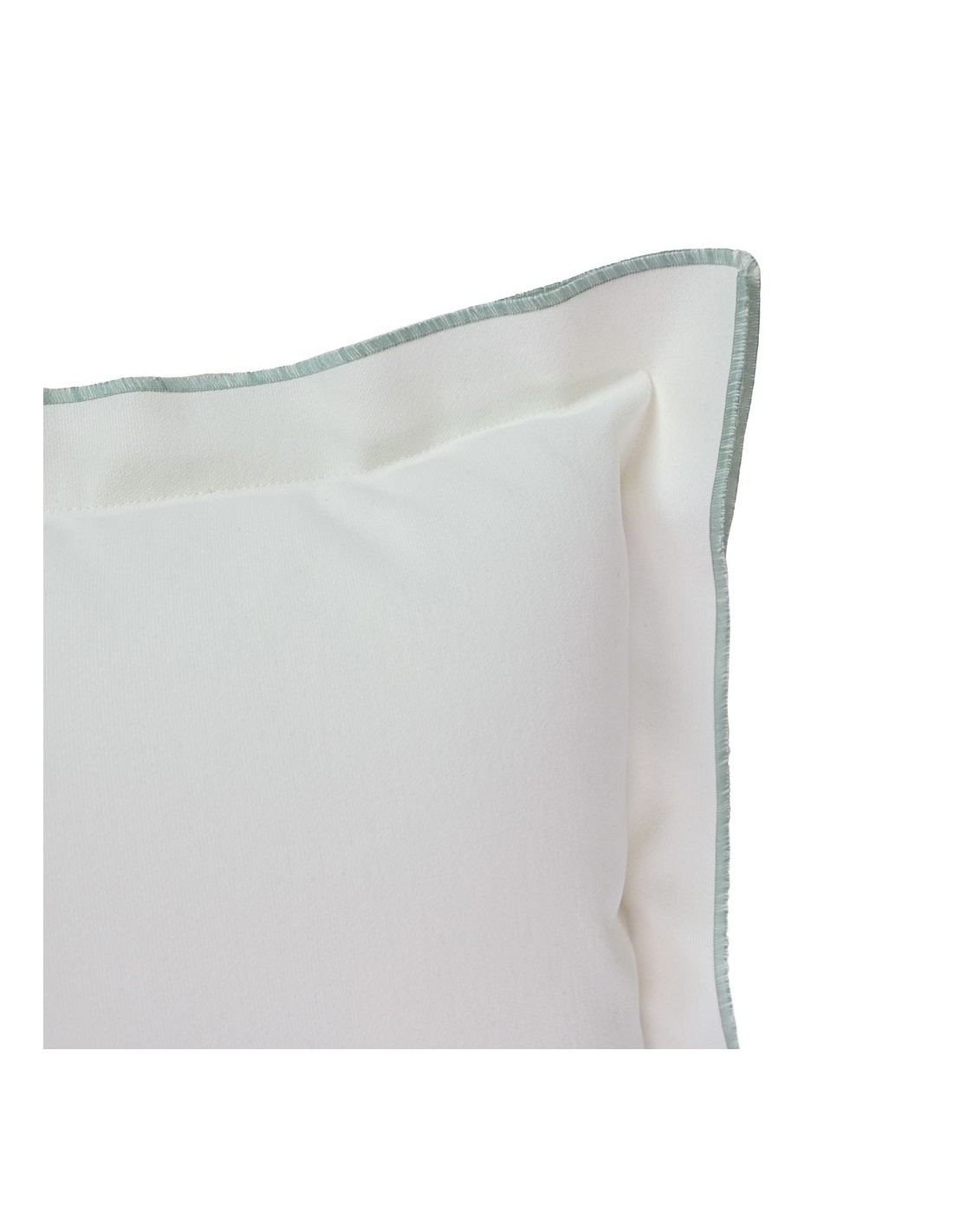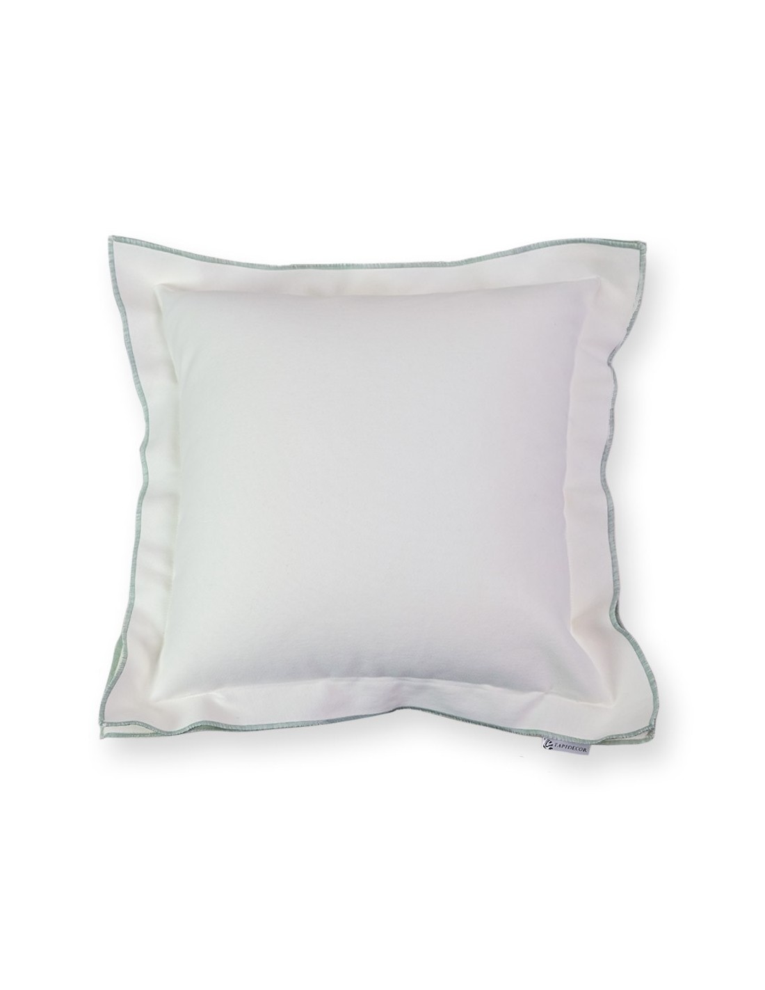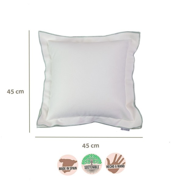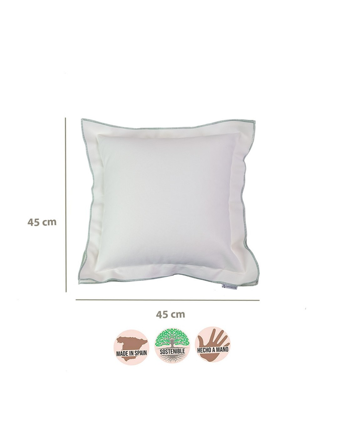Cojín blanco liso pestaña bordada verde 45X45 Relleno premium incluido