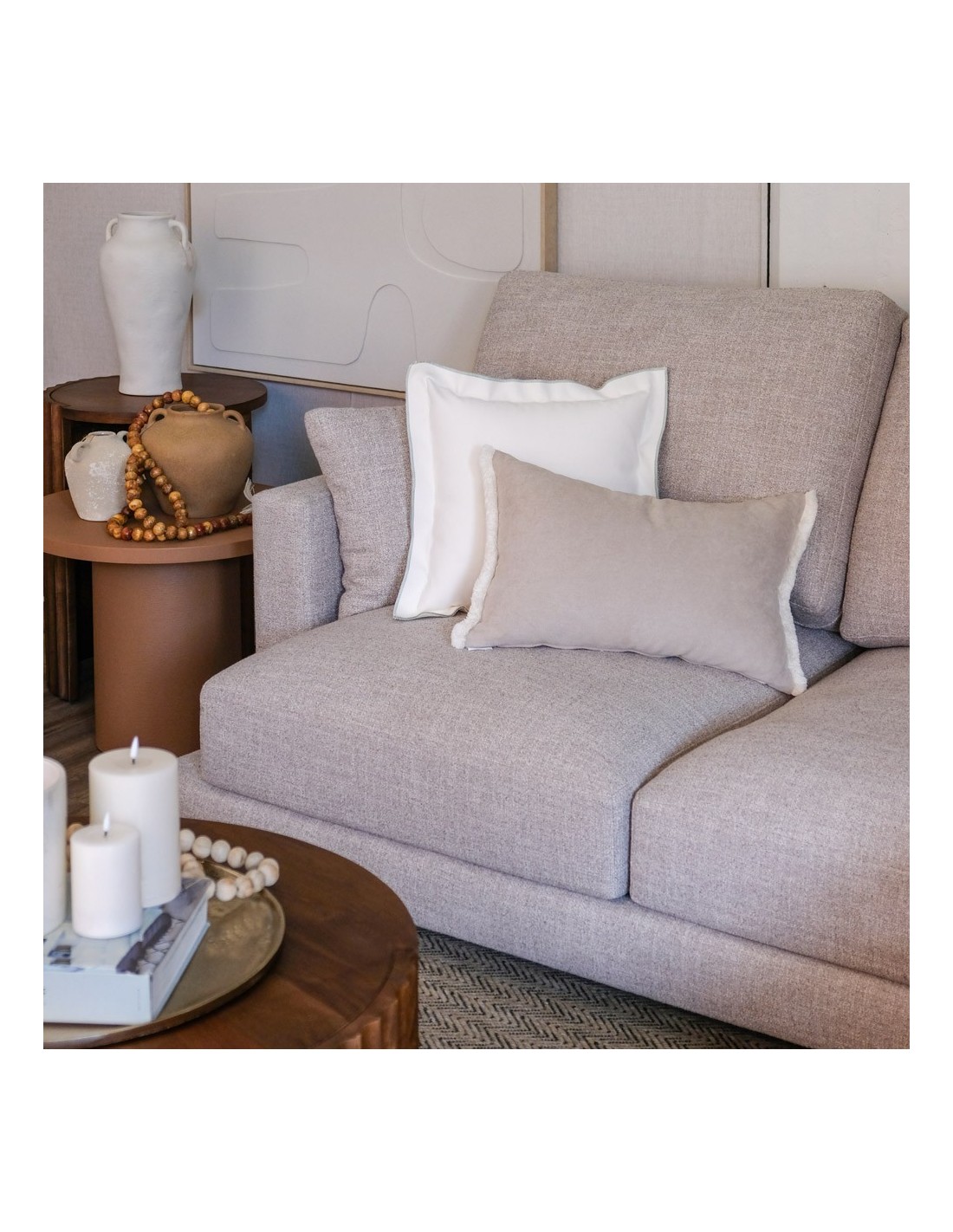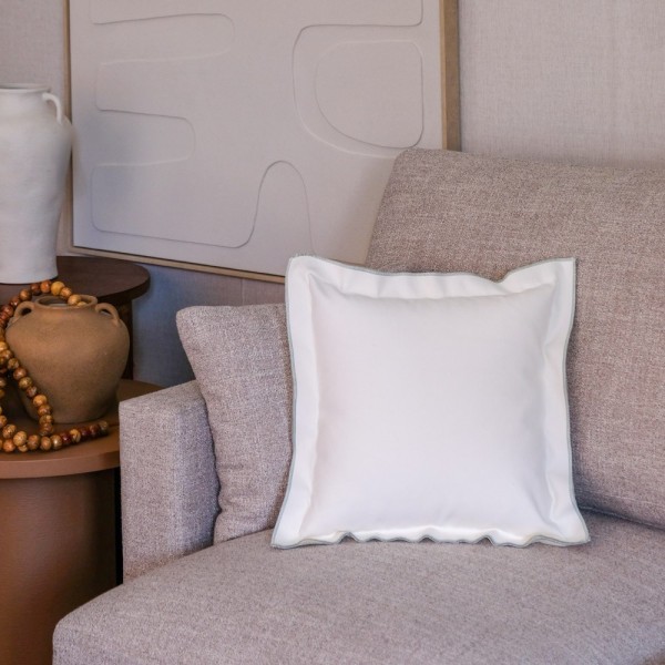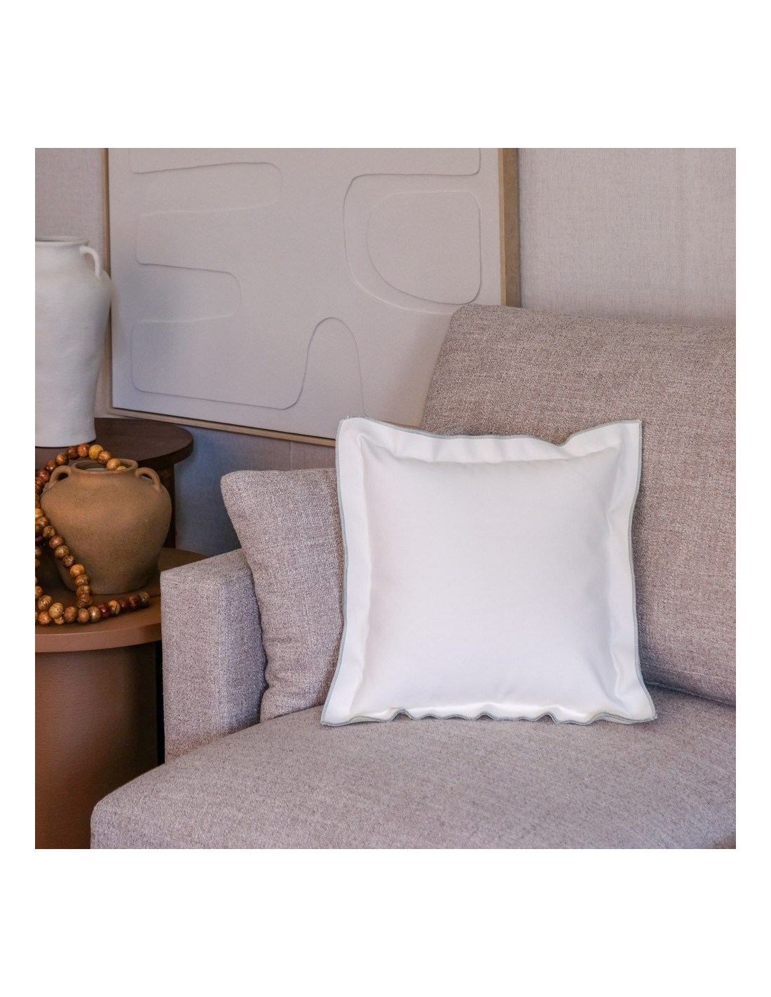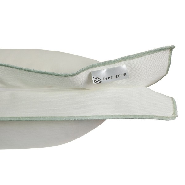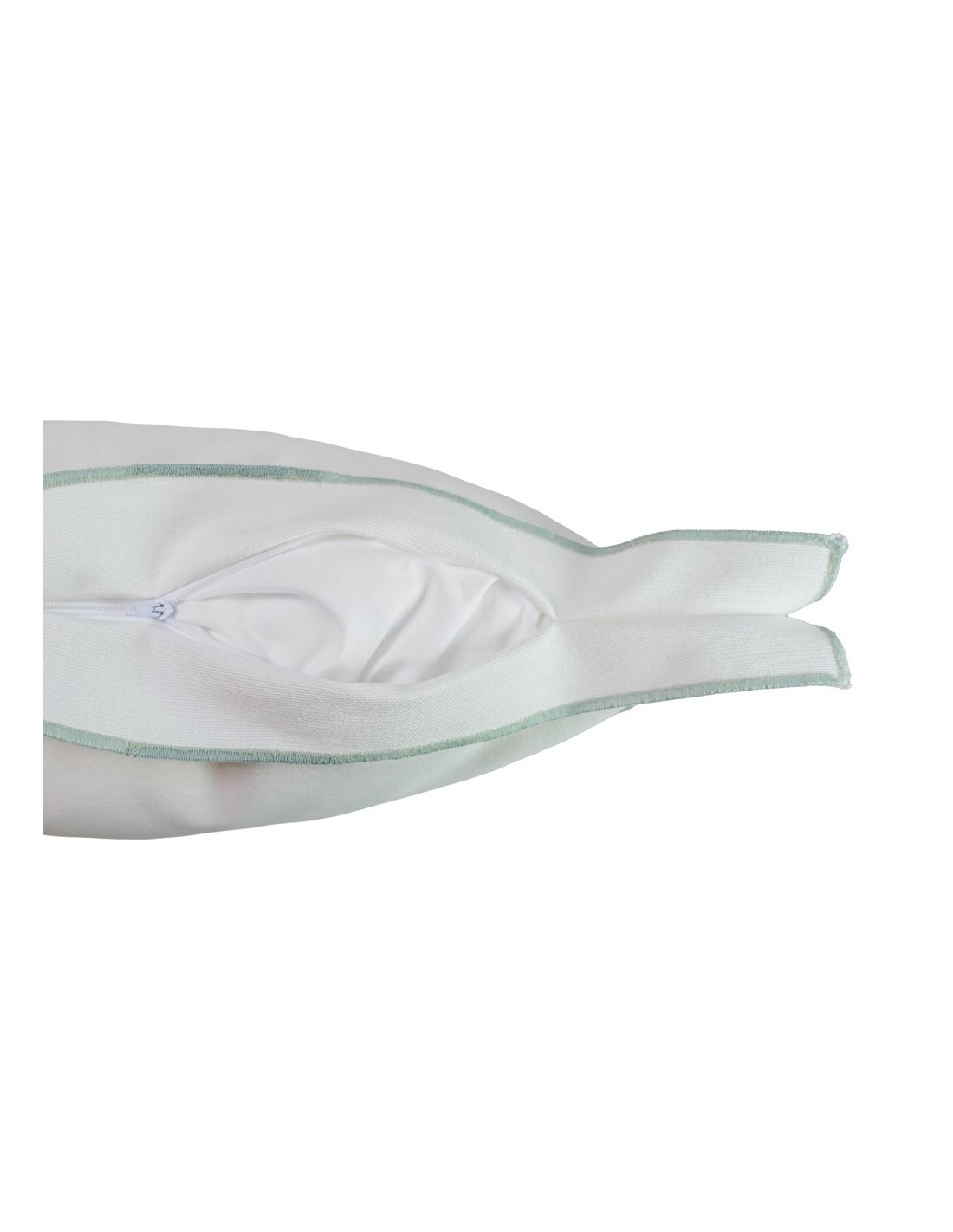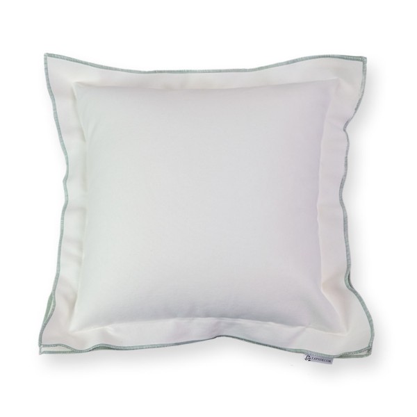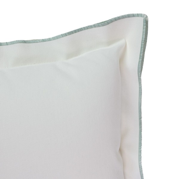 Cojín blanco liso pestaña bordada verde 45X45 Relleno premium incluido