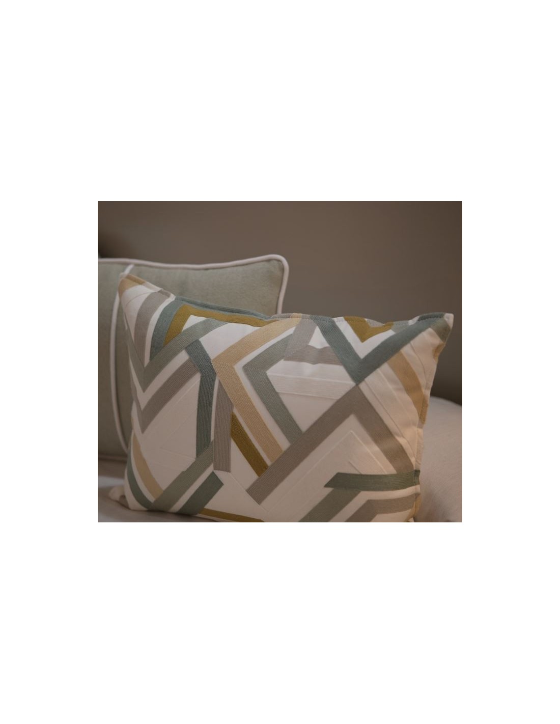 Cojín Bordado aristas Beige pestaña minima 60X40 Relleno premium incluido