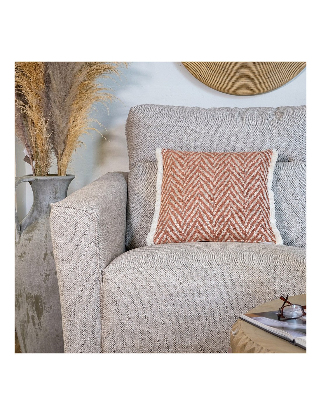 Cojín espiga caldera fleco blanco 50X50 Relleno Premium incluido