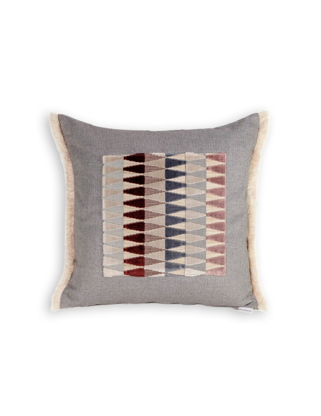 Cojín gris piedra centro geométrico fleco 50X50 Relleno Premium incluido