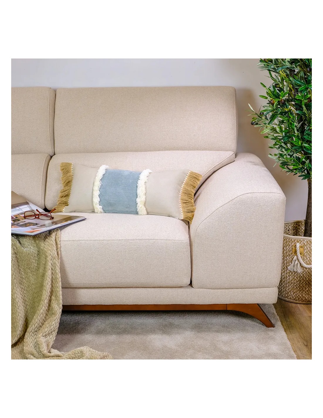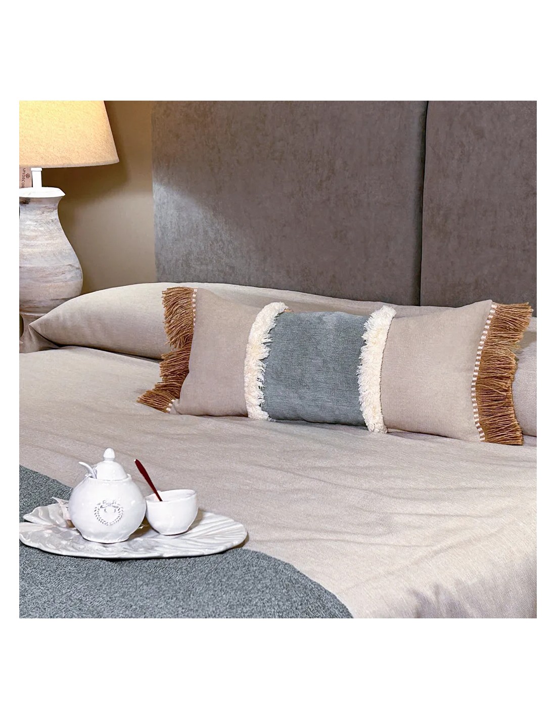 Cojín arena banda verde claro doble fleco 60X30 Relleno Premium incluido