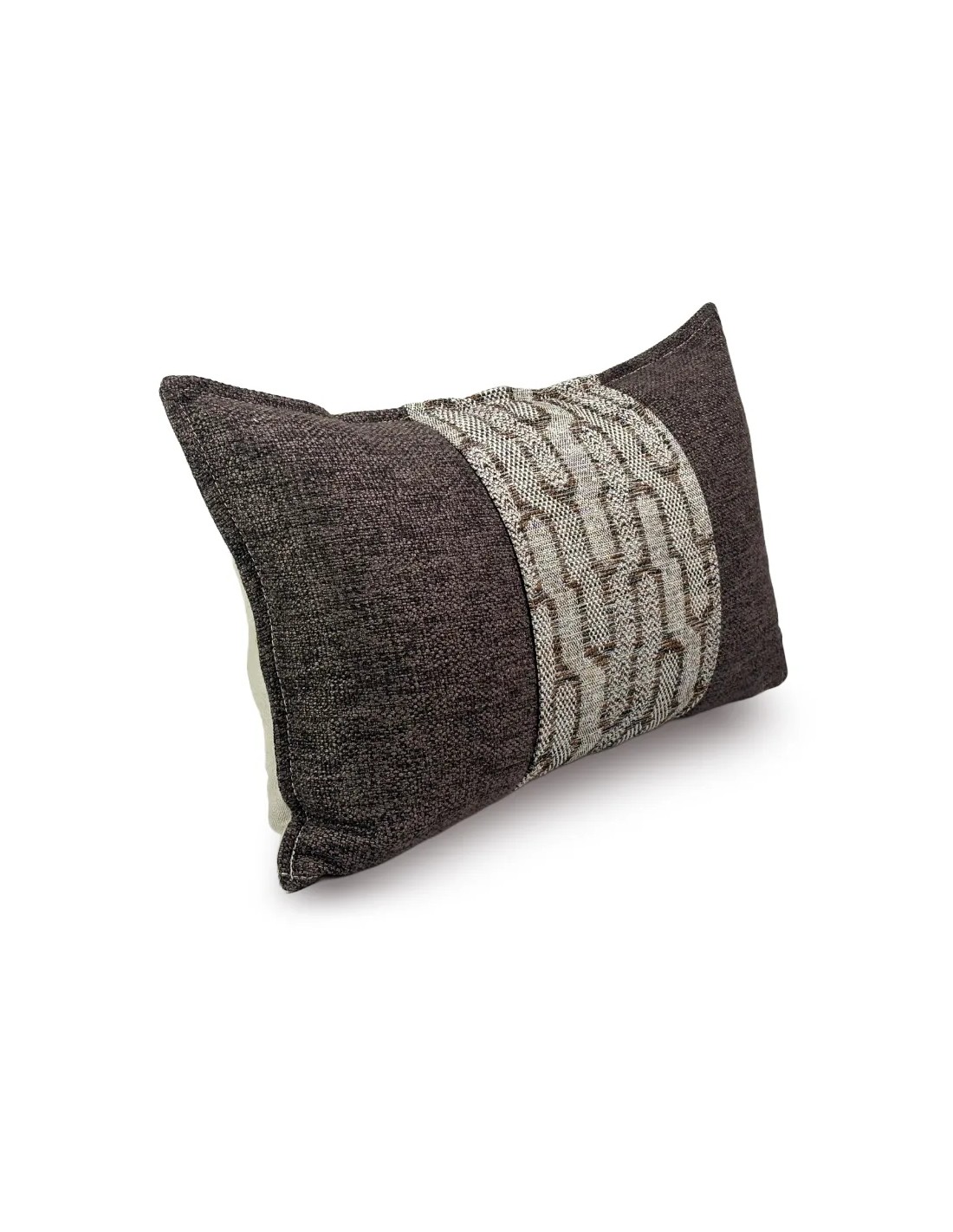 Cojín marrón choco. banda geom. 60X40 Relleno Premium incluido