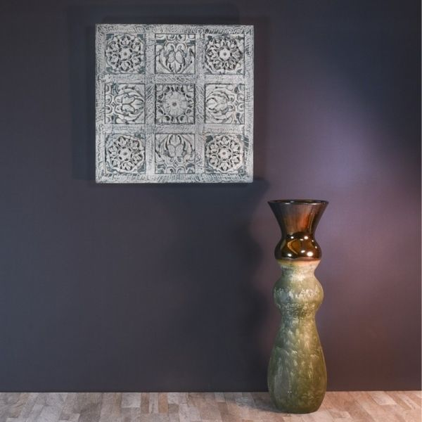 CUADRO PANEL MADERA TALLADA PA RED GRIS VERDOSO DECAPADO60X60