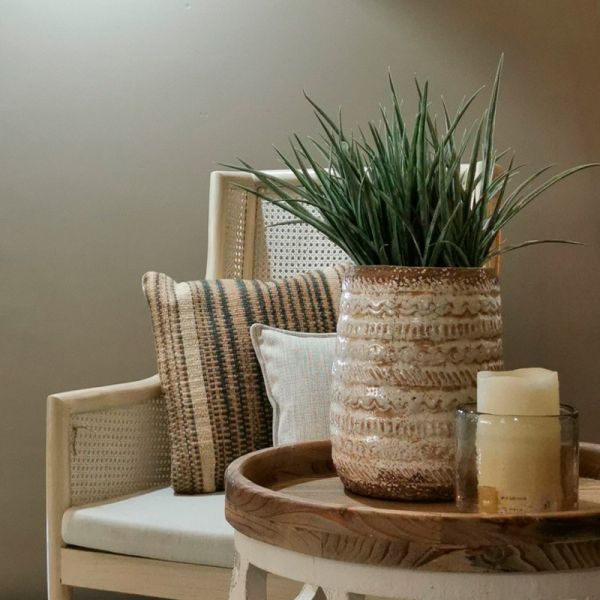 Con los Jarrones de Flores y los Maceteros podrás crear un ambiente hogareño y personalizar tu casa. ¿Cómo los prefieres?, de cerámica, porcelana, acero o vidrio, madera o plástico, bote con tapa ... cada uno con sus formas y colores se integran en tu estilo personal decorativo. Colócalos con arreglos florales en la mesa o en ese mueble del rincón olvidado y dale un nuevo look. Los Cuencos o Bols son perfectos para servir en la mesa los aperitivos, postres, desayunos, sopas o salsas. Podrás disfrutar de la comida y te aseguras éxito rotundo ante tus invitados. En Tapidecor podrás encontrar Jarrones, Cuencos y Maceteros diferentes estilos, tamaños y colores para que tu casa sea única y exclusiva. Producto "handmade": la forma y el color puede diferir ligeramente del que se muestra en la imagen.