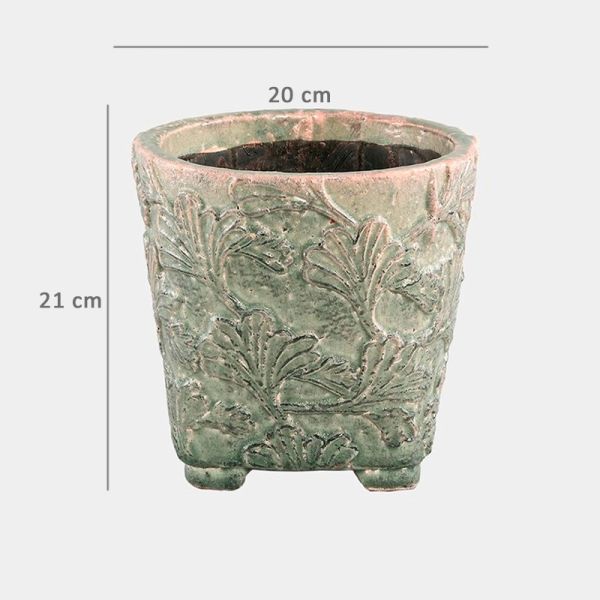 MACETA REDONDA MEDIANA CON HOJAS 21X20X21