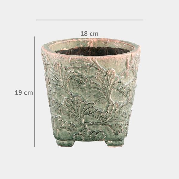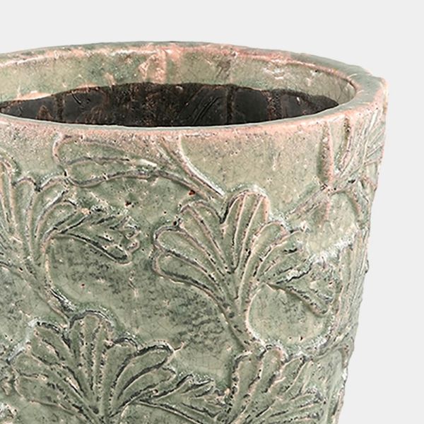MACETA REDONDA PEQUEÑA CON HOJAS 19X18X19