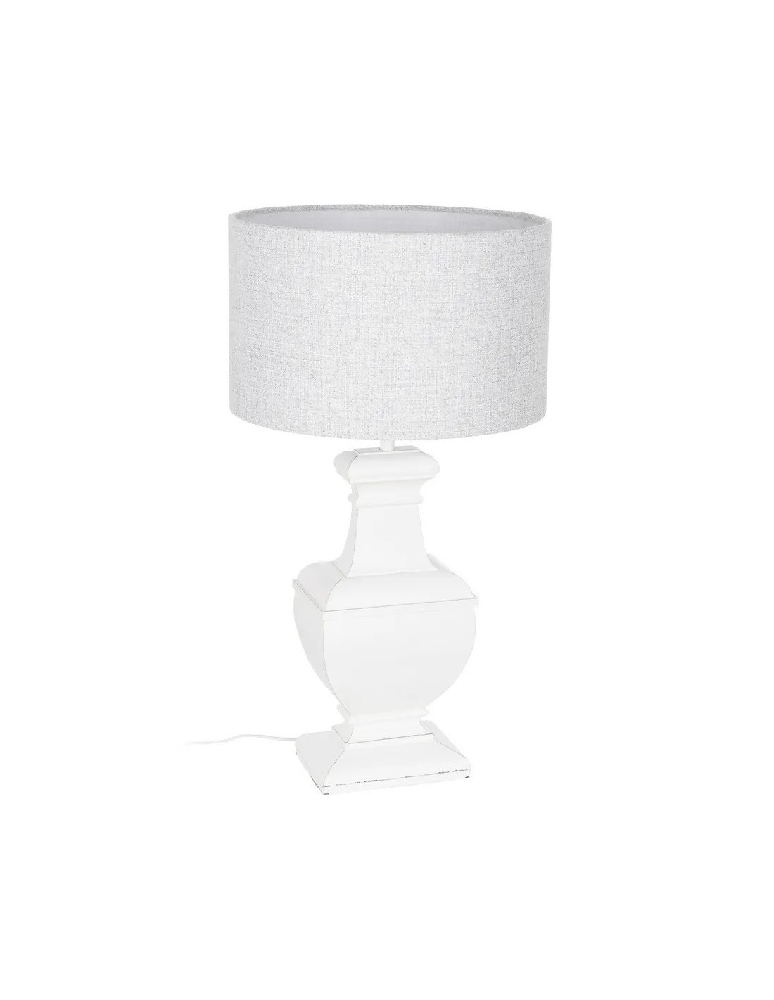 Lámpara mesa madera blanca 40x22x76 Pantalla redonda incluida