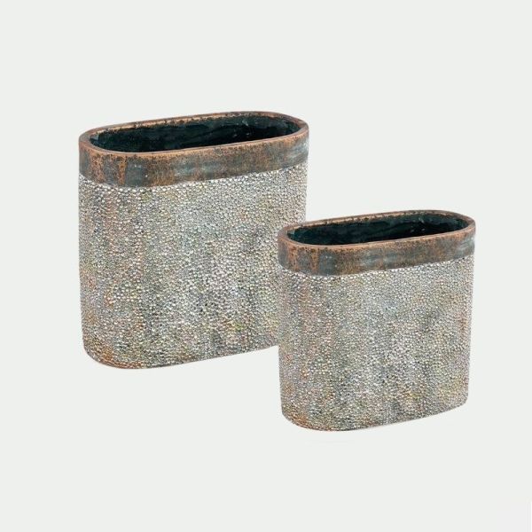 MACETA CERAMICA DORADO OVALADA PEQUEÑA 20X18X10