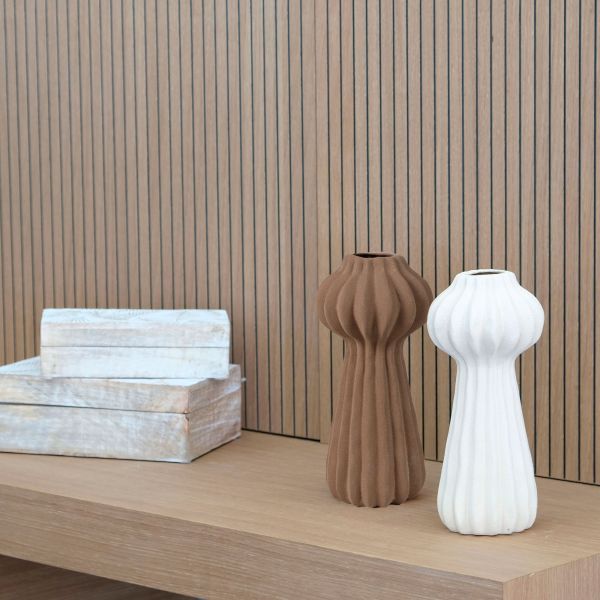 JARRON REDONDO ACANALADO CERAMICA OXIDO 12X12X25