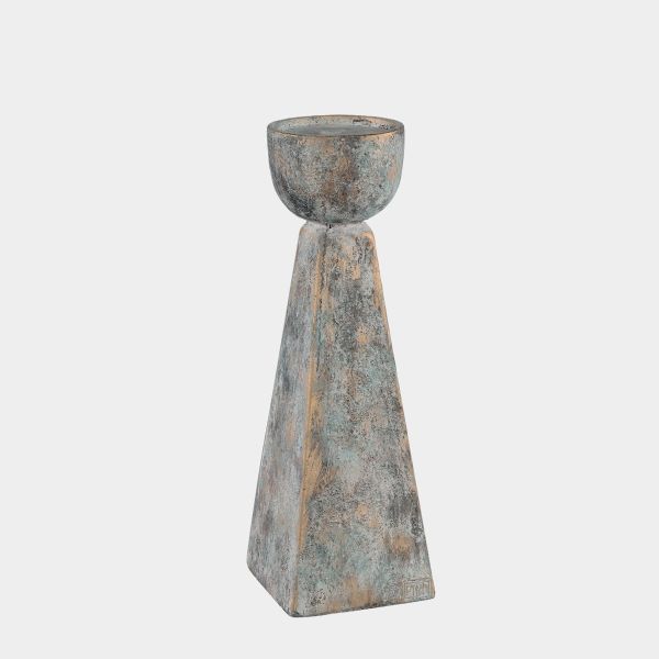CANDELABRO MEDIANO PIRAMIDE CEMENTO GRIS 12X37X12