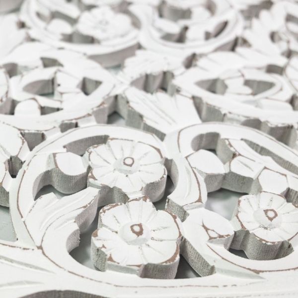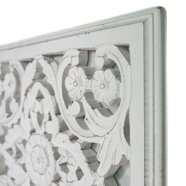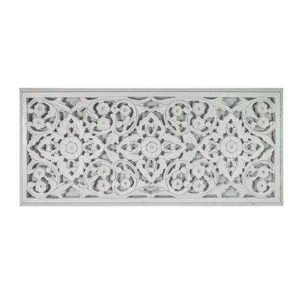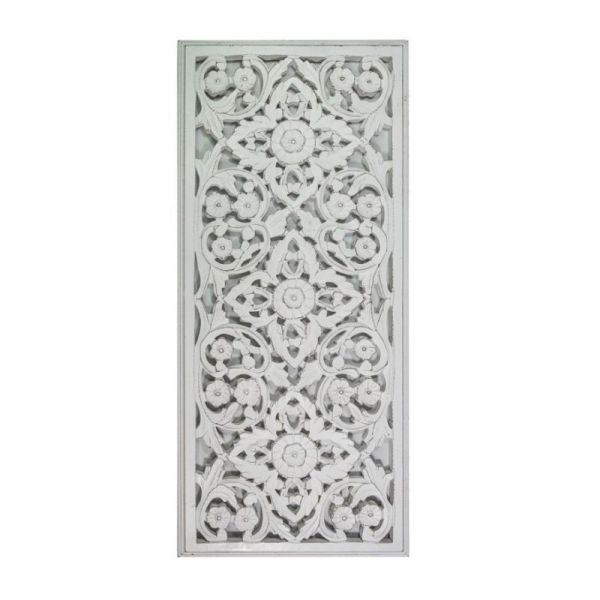 Talla cuadro madera pared 45x3x100 blanco roto decapado