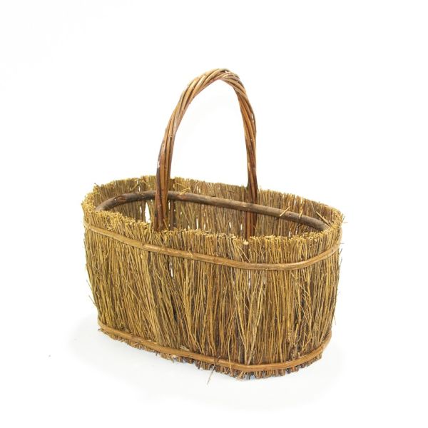 CESTA JARDINERA OVAL MIMBRE FIBRA NATURAL CON ASA 22X14X24