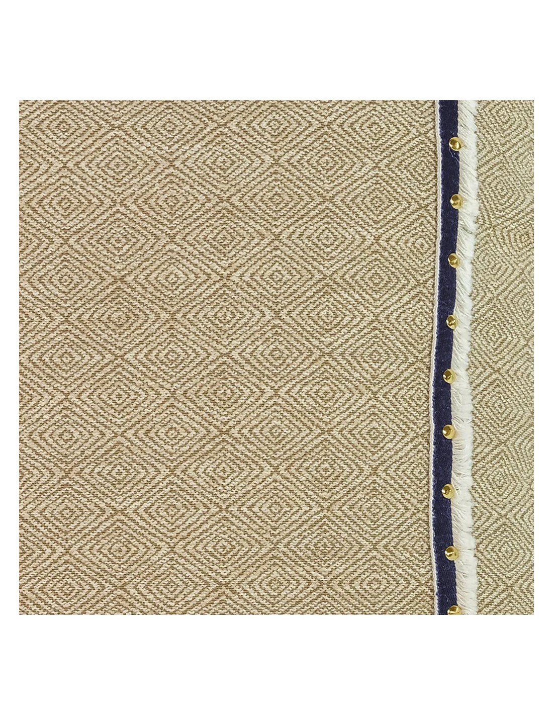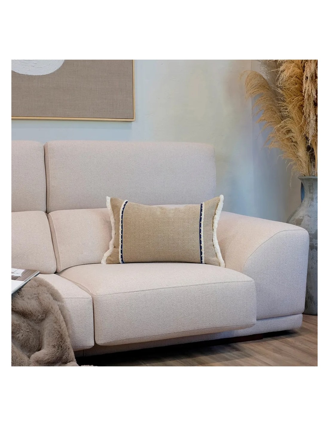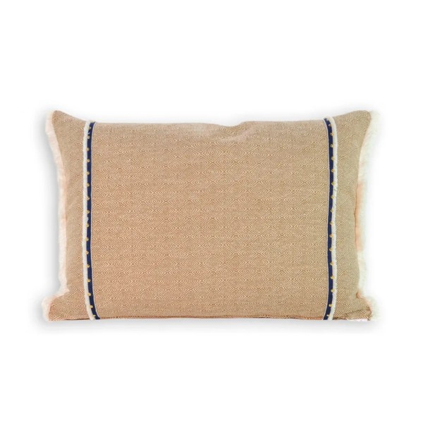 Cojín rectangular sofa cama geométrico camel relleno pluma fleco blanco 70x50