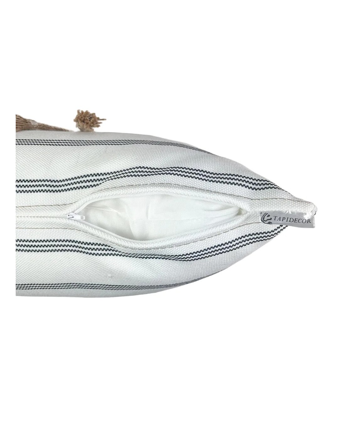 Cojín 50x50 Modelo Modelo pestaña bordada 4 y 4 + Nudo Cáñamo Confeccionado a Mano, Tejido lavable 15º Composición: XX % Poliéster, XX % Viscosa, XX % Algodón, xx% LinoRelleno Premium Incluido