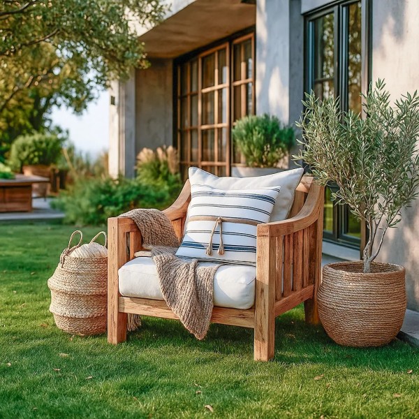 Plantilla Cojín exterior pestaña doble nudo 50X50 Relleno Premium Incluido