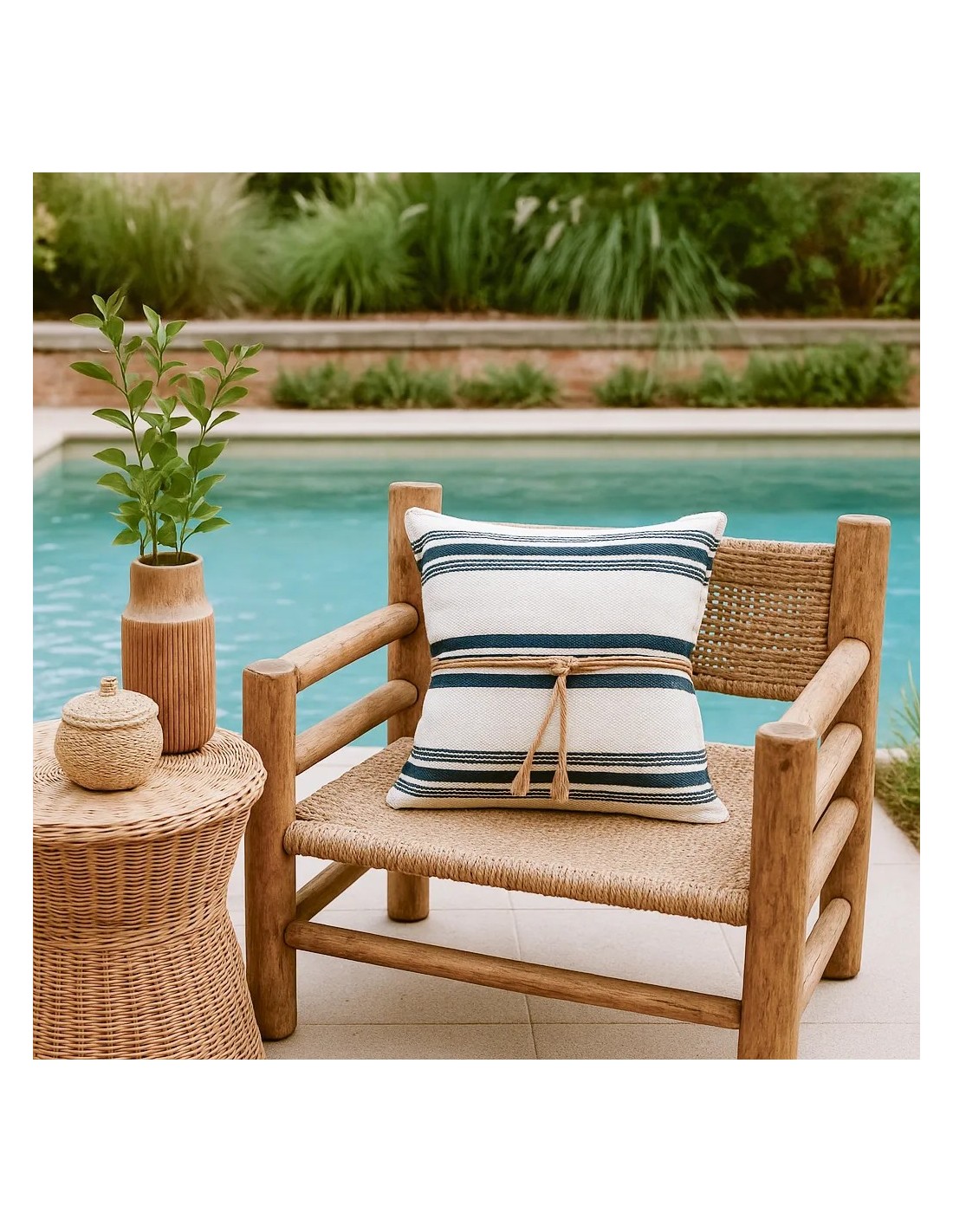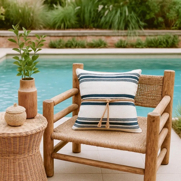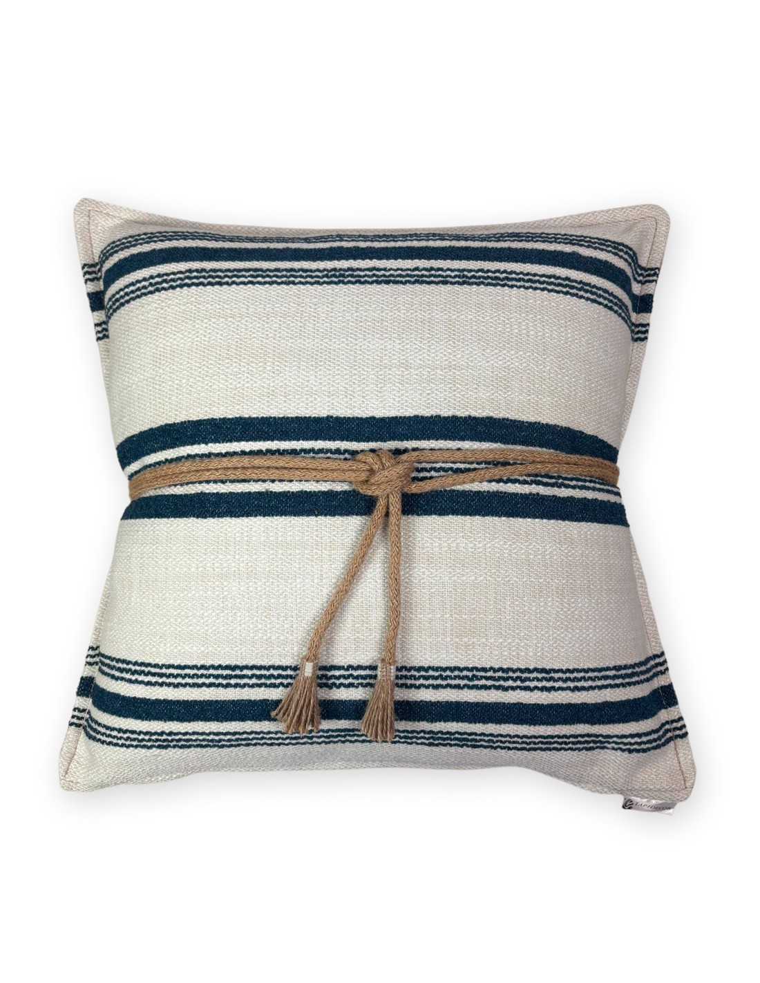 Cojín exterior rayas azul blanco nudo yute 50x50 Relleno Premium Incluido