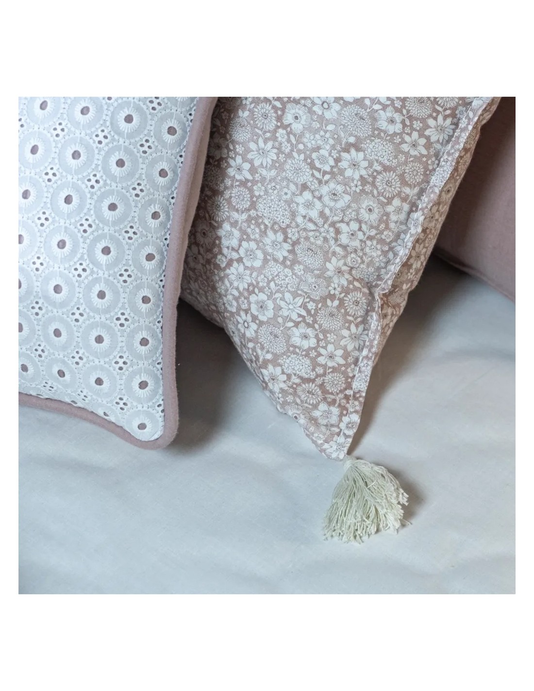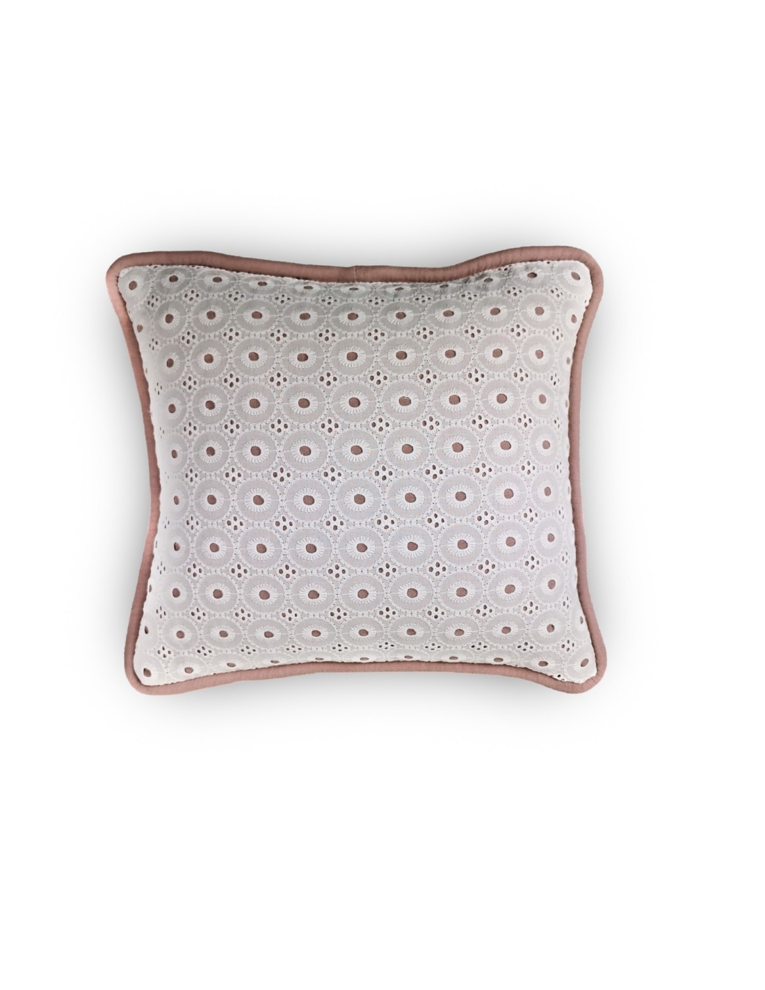 Cojín rosa empolvado voile blanco 35X35 Relleno premium incluido