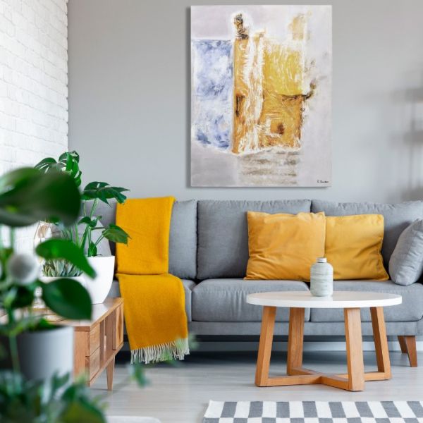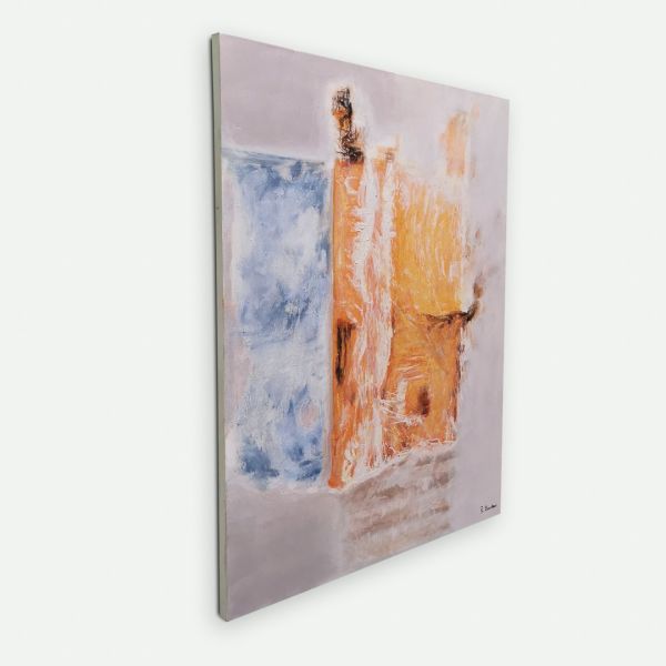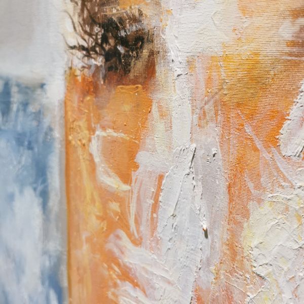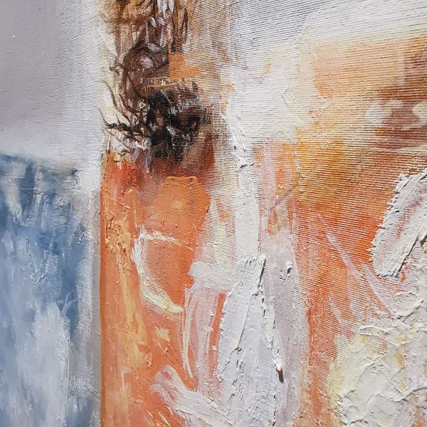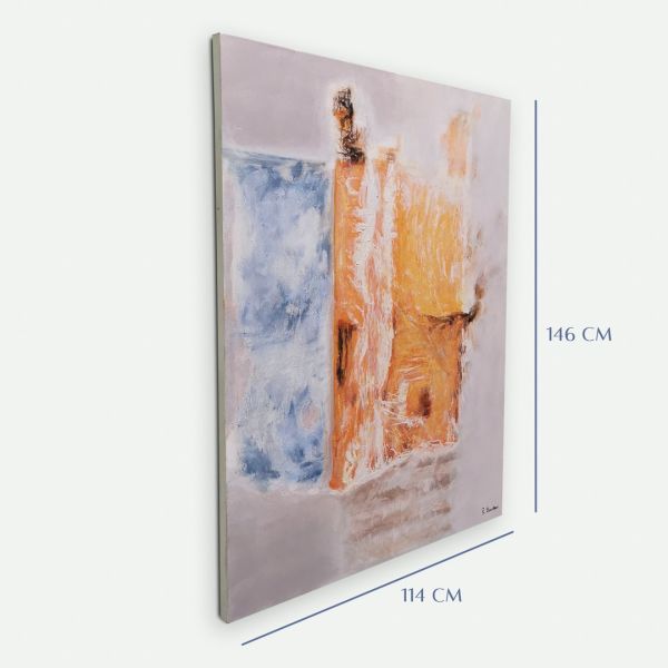 CUADRO A PARED PINTADO MANO SIN MARCO LIENZO NARANJA AZUL BEIGE 115X146X5