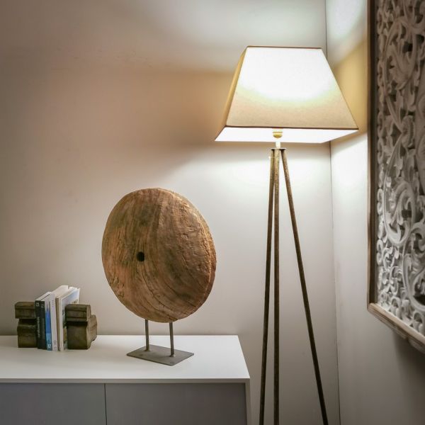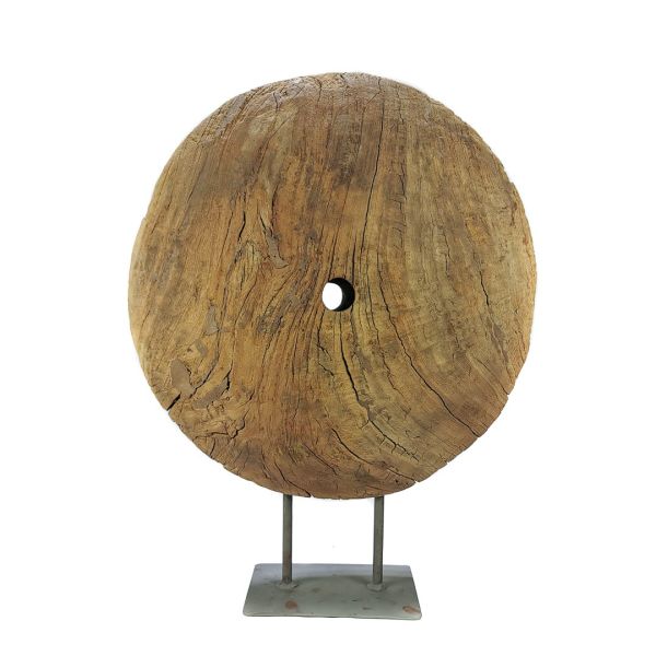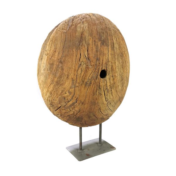 Figura escultura mediana redonda 46x60x14 madera base de metal, estilo étnico