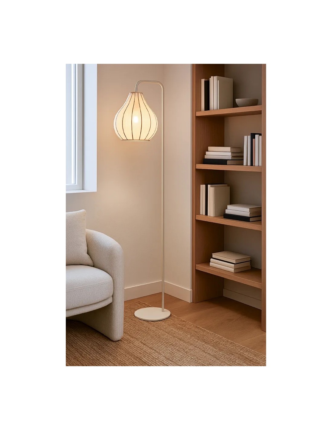 Lámpara de pie con pantalla tela arena 157x29 cm