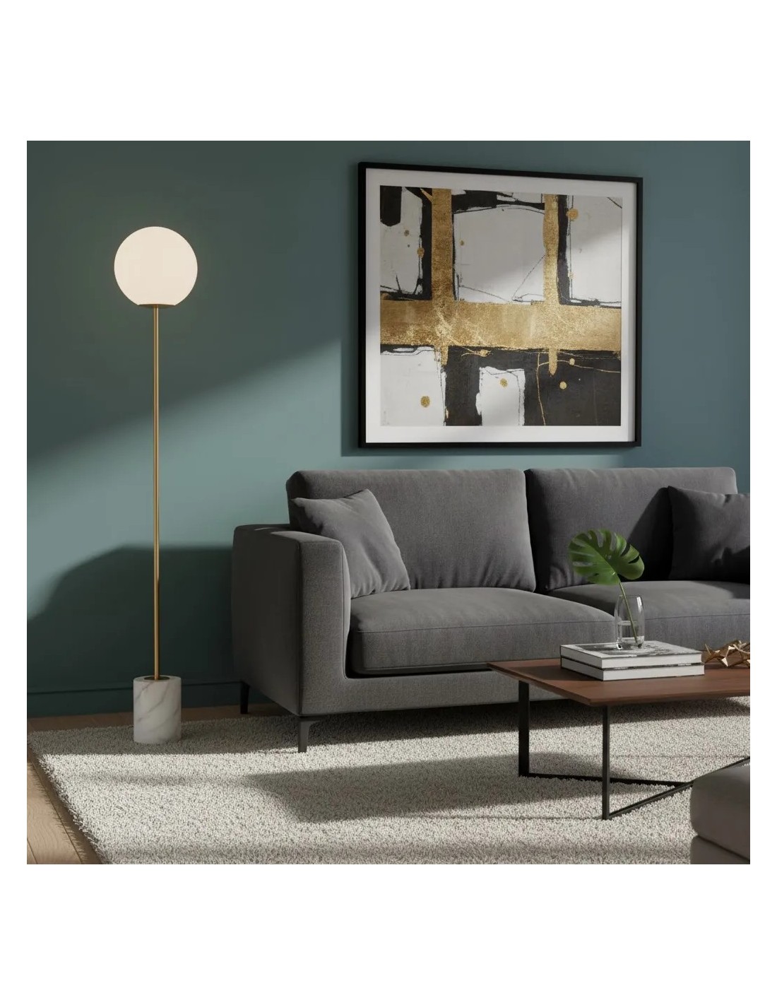 Lámpara de suelo esfera y metal dorado 25X25X156 CM