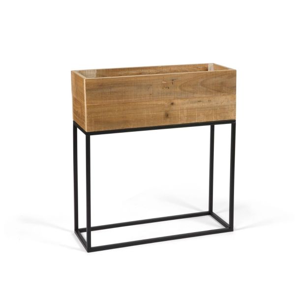 MACETERO MADERA RECICLADA MARRON Y NEGRO 55X21X60.5