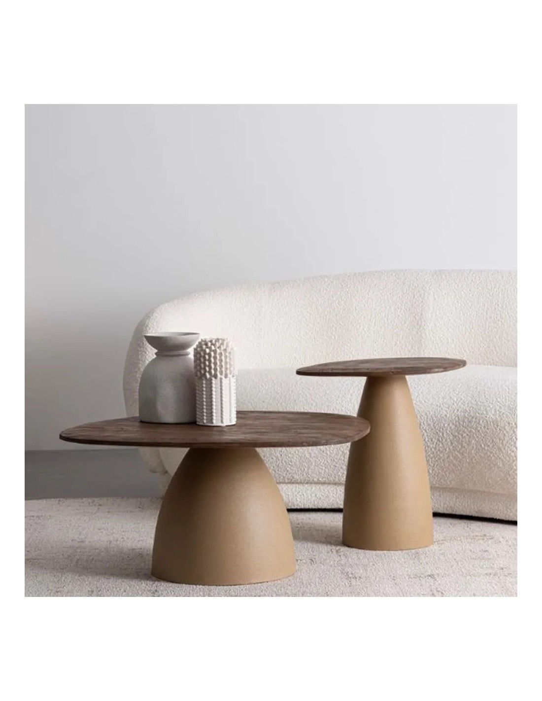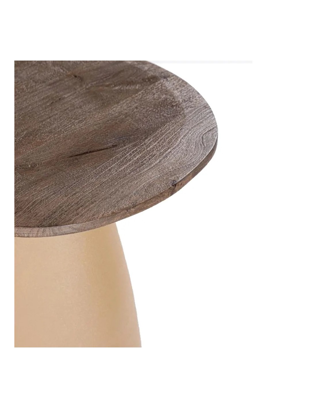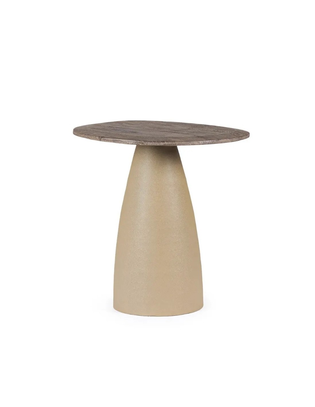 MESA AUXILIAR REDONDA MADERA MANGO RÚSTICA PATA CÓNICA ACERO EPOXI 50X43X50