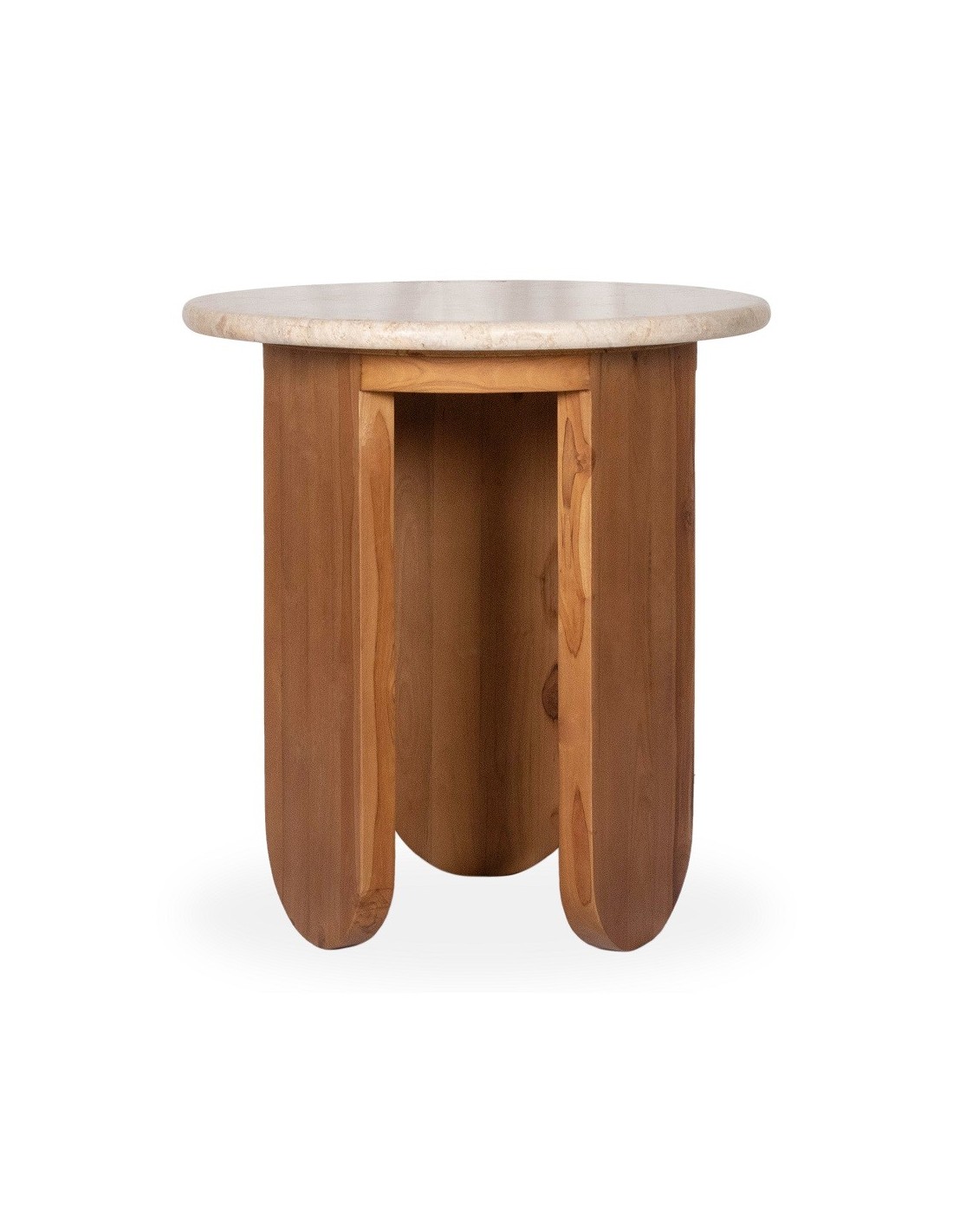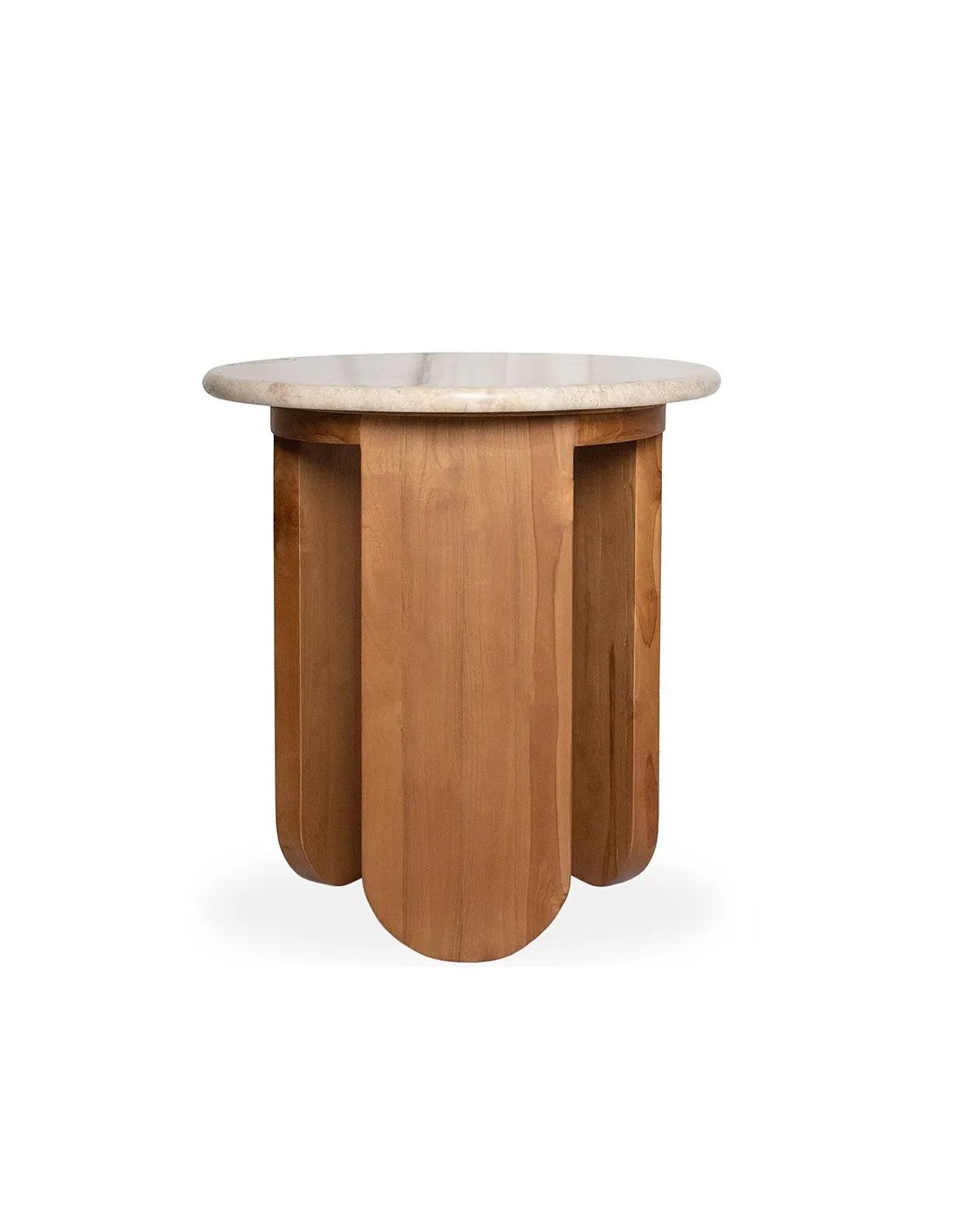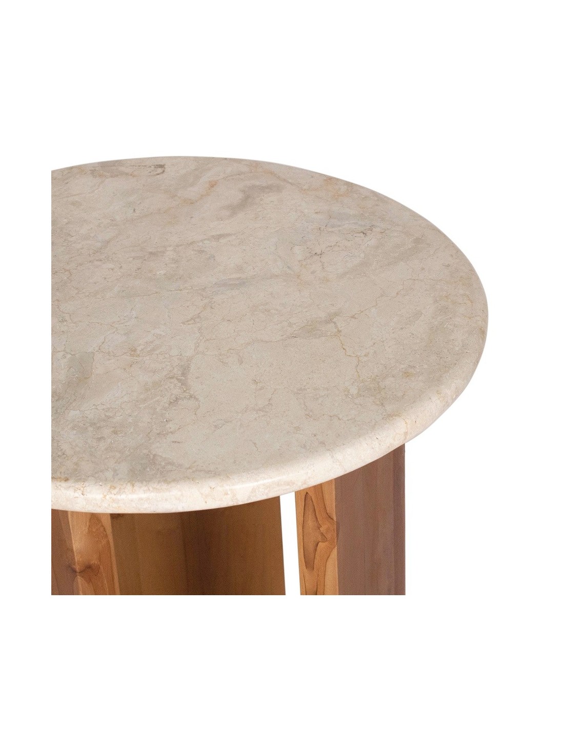 MESA AUXILIAR ALTA REDONDA 3 PATAS MADERA NATURAL TAPA MARMOL 40X40X45 CM