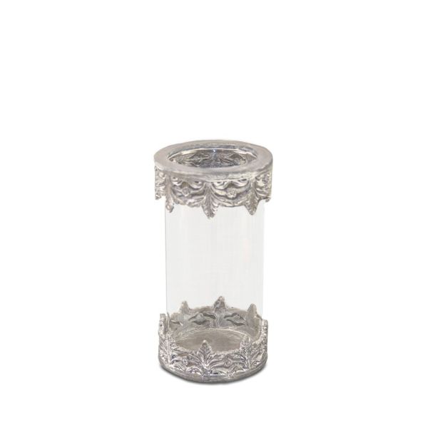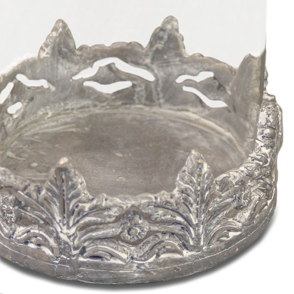 PORTAVELAS REDONDO PEQUEÑO CRISTAL METAL GRIS 14X27