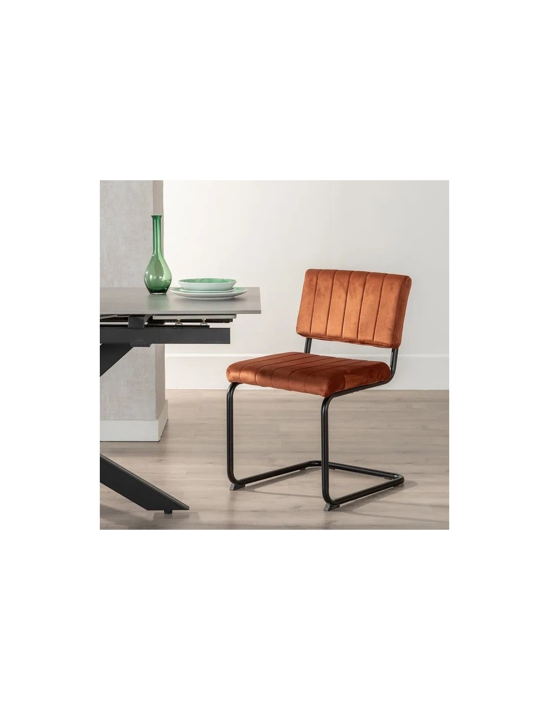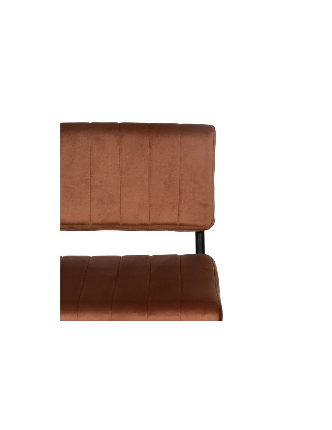 Material: Poliéster-DM-METAL Relleno: foam Densidad del relleno: 22kg/m3. Material tablero del asiento: DM. Material de las patas: Hierro Altura del asiento: 48cm Altura de las patas: 43cm. Altura del respaldo: 34cm. medidas del respaldo: 48x27x5cm Medidas del asiento: 48x45x6cm Distancia entre las patas: 46cm. Peso máximo soportado: 120kgs. No apilable. No necesita montaje.