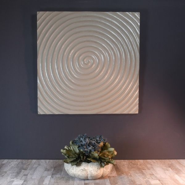 CUADRO PANEL MADERA TALLADA PARED CIRCULOS BLANCO 90X90