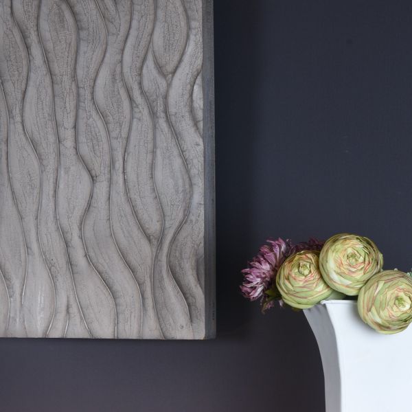 CUADRO PANEL MADERA TALLADA PARED GRIS RAYADO 60X60
